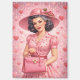 Add timeless romance to your Valentine’s collection with this elegant vintage-inspired illustration. Featuring a graceful, mature woman styled in classic pin-up fashion, this artwork showcases soft salt-and-pepper curls, a rosy pink heart-patterned dress, and a chic blush handbag. Set against a dreamy background of delicately hanging hearts, the design offers a subtle, refined Valentine aesthetic—romantic without being over the top.
