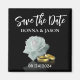 Imán Elegant Save the Date White Rose Gold Rings Script