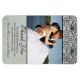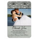 Este elegante imán flexible 4x6 de agradecimiento de bodas vintage tiene un borde negro de damasco en la parte superior con un fondo gris plateado desvanecido. En el centro, puedes añadir fácilmente tu fotografía. Abajo, las gracias están escritas arriba donde se pueden personalizar los nombres de la novia y el novio. Este boda le agradece a usted que el imán sea genial para todas las temporadas especialmente para otoño / otoño e invierno.