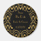 Elegante imán negro Save The Date redondo con un elegante diseño Art Déco en negro y oro. El texto y el tipo de letra son personalizables al hacer clic en el botón "Personalizar" - muchos tipos de letra entre los que elegir. Si necesitas ayuda para personalizar tu producto, ponte en contacto conmigo a través de mi tienda y estaré más que contento de ayudar. Tengo invitaciones y sobres a juego en mi tienda.