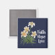 Elegante imanes de frigorífico azul marino de Pascua con un ilustracion pintado a mano de lirios de lluvia naranjas y las palabras fe, esperanza y amor. Se inspiró en la cita de Dwight L Moodley: "La fe hace todas las cosas posibles. La esperanza hace que todas las cosas funcionen. El amor hace que todo sea fácil". Semana Santa!