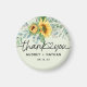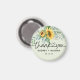 Elegante y chic imán floral de greenery de eucalipto y girasol en acuarela con gracias con corazón conectando y nombre y fecha. Idea perfecta para favores de boda o regalos para invitados para cualquier ocasión.