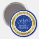 ¡Hacer de la graduación una celebración inolvidable con este imán conmemorativo! El elegante serif blanco y negro y las letras del guión en un fondo de mármol azul real bordeado por Relieve metalizado dorado y círculos blancos le dan un toque memorable a esta ocasión especial y a este hito. Personalice con los nombres del graduado, iniciales (o logotipo), nombre de la institución de enseñanza y año de graduación. Diseño © W.H. Sim. Ver más en zazzle.com/expressionsoccasions