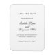 Elegante salva el imán de fecha con la redacción tradicional. Sus nombres están en caligrafía negra y sus detalles están en una fuente serif, sobre un fondo blanco. Este diseño clásico es perfecto para un boda de corbata negra.