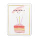 Elegante y elegante marco dorado con una rebanada de tortas de cumpleaños con velas y pinturas rosas con un feliz deseo de cumpleaños. Diseño artístico de lujo de cumpleaños. Personalice cambiando el texto o el personalizar para añadir su propio toque.