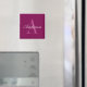 Imán Elegante Rojo Magenta, Rosa y Blanco Nombre y Mono