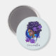 Este imán elegante y de moda cuenta con una hermosa chica afroamericana con decoración de color morado en el pelo. Puede personalizarlo con su nombre escrito en caligrafía elegante. También es un regalo perfecto para mujeres afroamericanas fuertes e independientes.