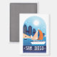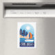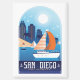 Precioso retro San Diego California Magnet mostrando un paisaje vintage de verano de playa con el asombroso paisaje de la ciudad californiana. Excelente idea de regalo y recuerdo. Compra ahora.