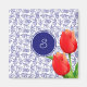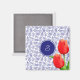 Elegante tulipanes rojos primavera floral, holandés estilo azul Delft Magnet. Personalice este elegante imán con su primer/monograma.