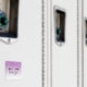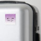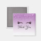 Gracias imán con un diseño moderno y elegante. El fondo es un color de gradiente morado con una imagen de un purpurina chispeante que gotea desde la parte superior. Un par de pestañas lindas y niñitas debajo de la imagen del purpurina.