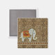 Este diseño caprichoso presenta un elefante adorable que camina por una frontera con estampado de diamantes. La manta del elefante forma un lugar donde mantener tu nombre o monograma. El diseño es naranja cálido y tonos dorados sobre un fondo de piel de guepardo con motivos.