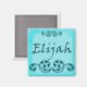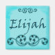 Personalizado con el nombre de Elijah en un fondo azul con trabajo de desplazamiento.
