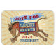 Votación por Elizabeth Warren - 2020 Presidente: Demócrata diseño de las elecciones políticas en burro : patear a burro ondeando una bandera con rayas y una estrella : tonos rojos, blanquecinos y azules con un burro marrón : fondo beige estrellado : elecciones presidenciales 2020 : mercadería de campaña para demócratas : política : equipo político : Estados Unidos : candidatos