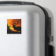 Una alce se para en la cima de una colina mientras un incendio arrasa detrás de él. Su silueta se destaca marcadamente contra el fuego en el fondo. Arte por computadora de Kathie Miller.
