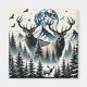 Obra de arte surrealista que presenta el alce y un paisaje forestal bajo una mística luna con paisaje montañoso. Perfecto para la naturaleza, la vida silvestre y los aficionados a la fantasía, mostrando la maravilla del desierto.