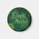 Golden elven script glows against a deep green backdrop, surrounded by mystical symbols and geometric sigils.