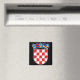 Escudo de Croacia. El escudo de armas de Croacia consiste en un escudo principal y cinco escudos más pequeños que forman una corona sobre el escudo principal. El escudo principal de armas es un tablero de ajedrez (chequy) que consta de 13 campos rojos y 12 plateados (blancos). Se le conoce comúnmente como šahovnica ("tablero de ajedrez", de šah, "ajedrez" en croata) o grb (literalmente escudo de armas). Los cinco escudos más pequeños representan cinco regiones históricas diferentes dentro de Croacia.