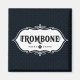 El trombón en texto decorativo contra un emblema blanco o negro es un regalo único para músicos de bajo nivel de latón, profesores de música y estudiantes en concierto y banda de marcha.
