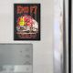 Illustrated depiction of the EMD F7 locomotive showcases Santa Fe warbonnet colors, American flag textures, and rugged diesel power. Celebrating postwar railroading, the artwork highlights industrial optimism, engineering heritage, and timeless design, capturing motion, strength, and nostalgia for classic midcentury railroad innovation through bold composition and historical accuracy today vividly.
