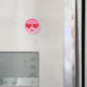 Unos imanes de emoji rosada, pequeños y robustos ojos.