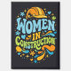 Letras retro en negrita con casco colorido, corazones y acentos florales que celebran a las mujeres en la construcción. Una declaración vibrante de empoderamiento para constructoras, trabajadoras y mujeres fuertes en oficios calificados.