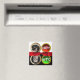 Sucio - Limpie el imán del lavavajillas con rubí 3D y piedras de gema esmeralda. Perros lindos expresivos con una cinta roja, creada por Bulgan Lumini (c). Miniatura de Enamel de Newfoundland "Bob", de Sir Edwin Landseer's 1838 "A Distinguished Member of the Humane Society" de William Essex (1784-1869).