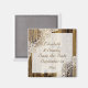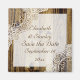 Elegante encaje rústico blanco sobre imán de "Save the Date" de boda de madera con encaje blanco sobre madera marrón que cubre dos esquinas de un rectángulo blanco con borde de madera marrón. Texto en marrón. Tenga en cuenta que el encaje y la madera están "impresos" y no son materiales reales. Este diseño elegante, chic y sofisticado con esencia rústica es parte de un conjunto de boda y es perfecto para una boda campestre chic o western en primavera, verano u otoño. También funcionará perfectamente para una boda con tema de granero western.