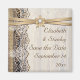 Encantadora puntilla blanca, cinta y flor en imán de madera para Save the Date de boda con puntilla blanca en madera vieja marrón con dos cintas de satén cruzadas y flor en beige con brillo metálico y una joya blanca. Texto en marrón. Tenga en cuenta que la puntilla, la madera, la flor y la joya están todas "impresas" y no son tela, madera, gema o cristal reales. Este diseño elegante, sofisticado y romántico con esencia rústica es parte de un conjunto de boda y es perfecto para una boda rústica campestre o para una boda occidental de primavera, verano u otoño con una paleta de colores neutros.