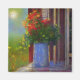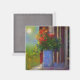 Este imán hermoso cuenta con un florero impresionista de flores en el porche delantero.