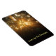 Muestra el imán "Enciende la oscuridad", una imagen del amanecer brillante que destapa su brillante luz a través del follaje del árbol.