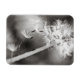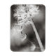 Fotografía en blanco y negro de una planta de Dandelion. La flor se ha ido y ahora la brisa está enviando las semillas para el crecimiento futuro.