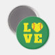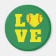 El imán retro "Amor" inspirado por la época con un ícono de corazón de softball en medio de la palabra "AMOR" en amarillo y verde, perfecto como regalo de equipo, entrenador gracias, o fiesta de cumpleaños de temas de béisbol o softball. Ideal para las noches de premios y los novillos para el entrenador de béisbol o el jugador de softball.