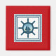 Diseño de temática náutica con decoración de escenas de vela en cuadrados rayados sobre fondo rojo