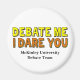 Debate conmigo, te atrevo a imprimirte. Una cita segura de una persona obstinada que puede discutir su camino a través de cualquier discusión o competencia. Guay texto amarillo brillante y naranja sobre estos imanes del humor de los oradores para un equipo de debate y discurso de la escuela secundaria, universitaria o universitaria. Ten la confianza de que ganarás cualquier discusión.