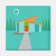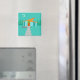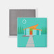 Este Space Age Personalizado House Square Magnet es el sueño de un amante retro que se ha hecho realidad. El minimalista diseño de arte cuenta con una casa de piedra acuática con grandes ventanas de color azul pavo real. Colgado desde el techo atómico, inclinado y naranja, una luz sputnik amarilla ilumina la puerta delantera. La puerta roja de la entrada y el pomo de la puerta de estribor están muy bien compensados por los tablones verticales de madera verde de la entrada exterior. Un camino de piedra gris atraviesa el césped inmaculado, que parece turquesa a la luz de la luna. Detrás de la casa, una hilera de grandes y delgados árboles apuntan al cielo turquesa y a la silueta blanca de una luna llena. Aunque no hay personas visibles, en una noche como esta, los habitantes de la casa kitschy probablemente estén dentro viendo las imágenes de las noticias de los astronautas.
