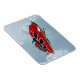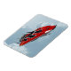 Representación digital 3D de una nave espacial roja sobre fondo azul del cielo