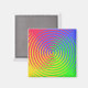 Aquí hay un imán colorido con un patrón de arco iris espiral abstracto girando alrededor de un objetivo central en colores verdes, azules, amarillos, naranjas y rojos. Podría ser usado en el contexto de LGBT.