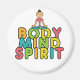 El diseño de Body Mind Spirit presenta las palabras que se superponen ligeramente en varios colores con un yogui meditando sobre ellas. Una imagen pacífica para enfatizar el significado del cuerpo, la mente y el espíritu.