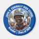 Esta genial foto personalizada de la banda de marchas de la escuela secundaria muestra tipografía blanca de su equipo y nombre del jugador en un imán azul. Personalice con la fotografía de su estudiante y el año de clase como un padre orgulloso. Una madre y un padre pueden usar estos botones para competir y jugar.