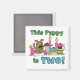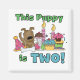 Diseño de cachorros Camisetas de 2º cumpleaños, trajes para el cuerpo, imanes, tarjetas, bolsas de té, botones de 2º cumpleaños y más con velas de cumpleaños, un adorable cachorro marrón, un gorra fiesta y muchos dulces de cumpleaños! El texto dice "¡Este cachorro es 2!".
