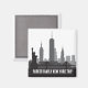 Personalizar este imán de vacaciones de la ciudad de Nueva York de moda para su viaje familiar a la gran manzana. Este moderno keepsake cuenta con un gran dibujo en blanco y negro del perfil de Manhattan y de la Estatua de la Libertad sobre su texto personalizado. Rascacielos Guay de recuerdo para tu viaje.