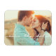 Un imán fotográfico es la manera perfecta de hacer saber a sus amigos y familiares sobre el compromiso y la fecha de boda. La tipografía de estilo moderno con letras a mano con una elegante mezcla de fuentes en blanco se sitúa en el fondo de su foto especial. Personalizar sus nombres, fecha de boda / ubicación.