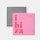Muestra tu amor por Ibiza con estilo con este imán audaz y moderno. Con un diseño tipográfico elegante, la palabra "Ibiza" se divide creativamente en tres líneas en elegantes letras minúsculas. Imprimido en rojo vivo con un fondo rosa brillante, este imán llamativo combina minimalismo con un color llamativo para un aspecto que destaca. Ya sea que sea un viajero frecuente de Ibiza, o simplemente que le guste el ambiente icónico de la isla, este imán de recuerdo es la manera perfecta de expresar su pasión.