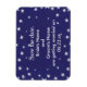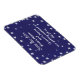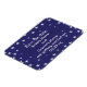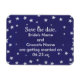 La pintura de estrellas de plata formando un borde divertido, sobre azul marino real, con Save the date, y un marcador de posición para nombres y fecha, se imprime en imanes flexibles personalizados. El texto es blanco y se puede personalizar fácilmente en el formulario de plantilla. Hay elementos coincidentes en esta tienda. Gracias por comprar CherylsArt en Zazzle.