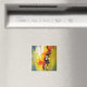 Dit abstracte schilderij straalt energie en dynamiek uit door het gebruik van levendige kleuren zoals geel, oranje, rood en zwart. De compositie lijkt op een explosie van licht en kleur, waarbij dikke verfstreken en spontane spatten samenkomen in het midden van het doek. De structuur van de verf en de contrasten tussen lichte en donkere tinten zorgen voor diepte en beweging. Het werk nodigt de kijker uit om eigen interpretaties te geven aan de krachtige vormen en het speelse kleurgebruik.