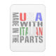 Imagen humorística que se lee, HECHA EN LOS EE.UU. CON PARTES ITALIANAS. Las letras tienen texturas mirándolas, con "italiano" en verde, blanco y rojo. "USA" se muestra en rojo, blanco y azul.