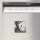 This pretty magnet has a beautiful and magical scene with a fairy standing next to a tree full of whimsical vines and flowers.