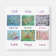 El siguiente collage de arte está compuesto por Angel Words (Fe, Esperanza, Amor) y Palabras Inspiradoras (Fe, Esperanza, Amor). El texto entre las seis pinturas señala "fe, esperanza, amor". Estas imágenes están diseñadas de tal manera que proporcionan reflexión y meditación sobre palabras positivas. La idea es pensar en la pintura y te ayudará a tener una actitud positiva asociada con una palabra que le sanará emocionalmente a una persona. También puede combinarlos para hacer su propia serie de palabras para meditación. La fe, la esperanza, las palabras de amor son también una referencia a la carta de la Biblia de Paul sobre las virtudes del amor (1 Corintios 13:13). "Así que ahora la fe, la esperanza y el amor siguen estos tres, pero el mayor de ellos es el amor". Puedes personalizar este imán de arte inspirador con tu propio texto e imágenes usando la opción "Personalizar".