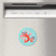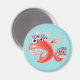 Un imán monstruo gracioso con un ilustracion digital dinámico de dos criaturas felices con formas extrañas -una grande y una pequeña- paradas unas al lado de otras y sonrientes. El grande tiene tres colas de pingüino y sonríe alegremente mostrando sus dientes afilados. Su pequeño amigo tiene un peinado gracioso de sólo tres pelos.