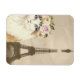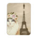 Foto de fondo de color sepia vintage de la Torre Eiffel con la cubierta de un bonito gato lujoso con corona floral